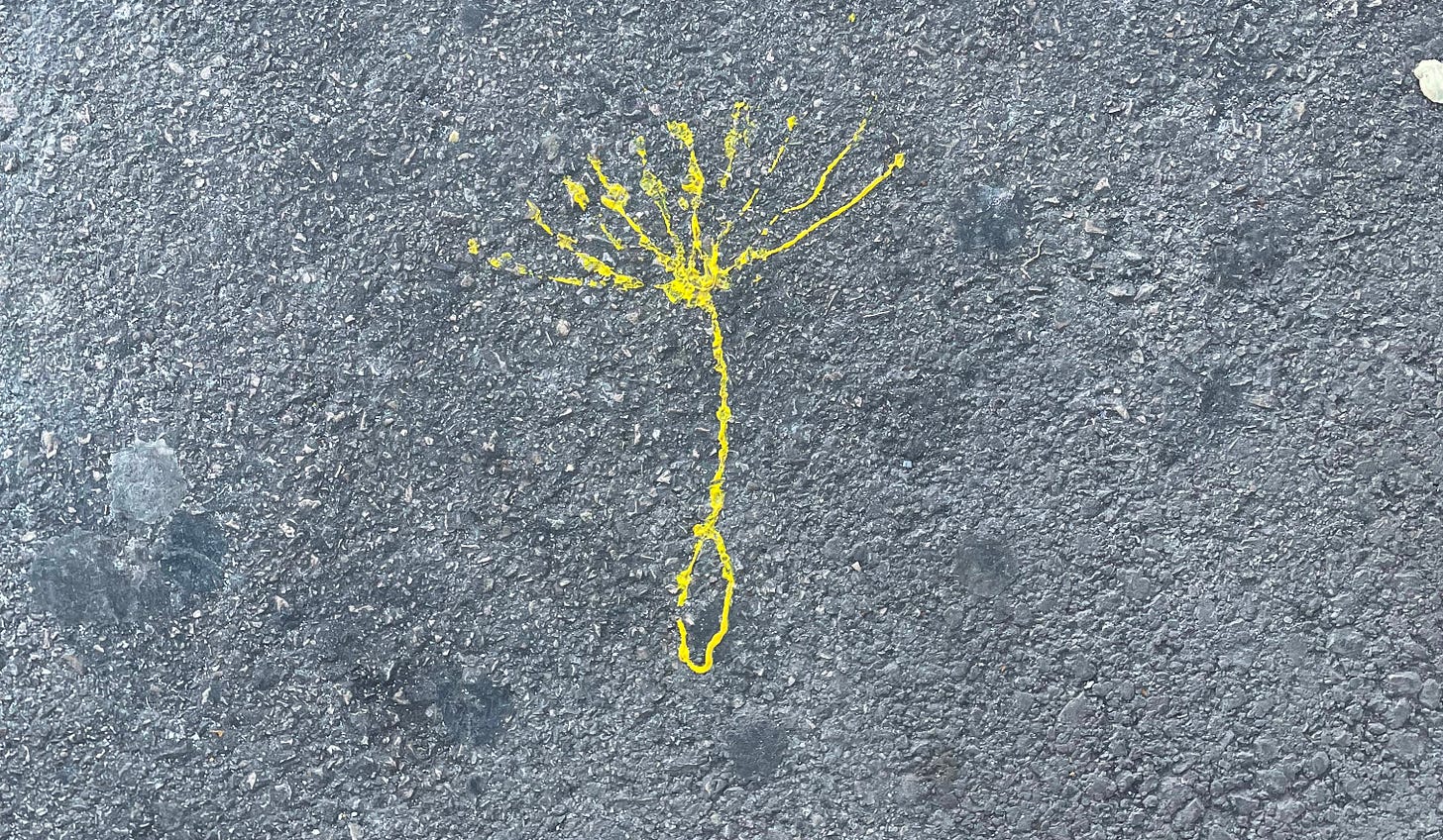 Ma come sempre, prima di iniziare, una foto: strani segni sull’asfalto.