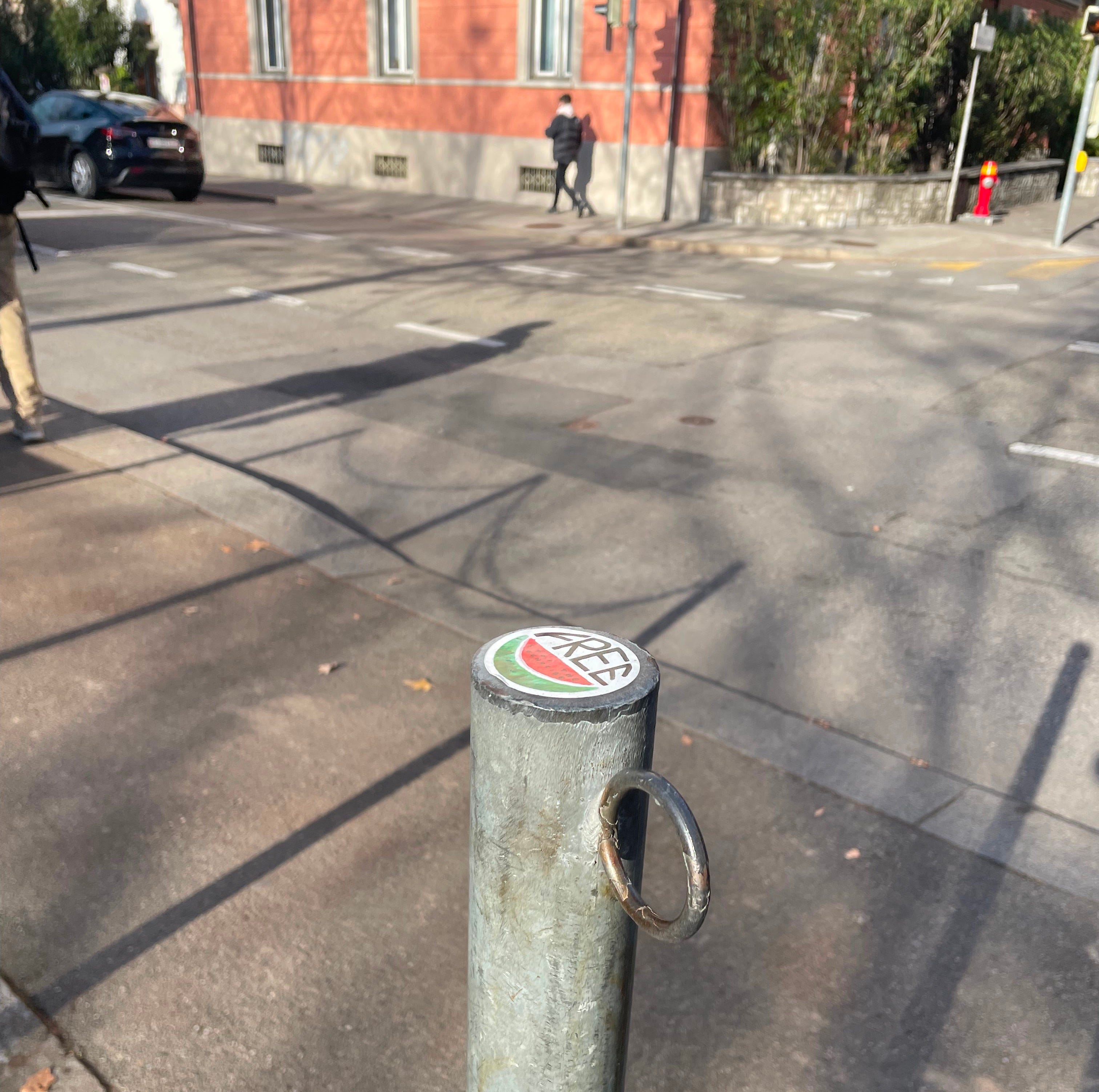 Ma come sempre, prima di iniziare, una foto: curioso come l’anguria, usata per superare le censure sui social media della bandiera palestinese, venga ormai usata ovunque, anche dove usare la bandiera non sarebbe affatto un problema.